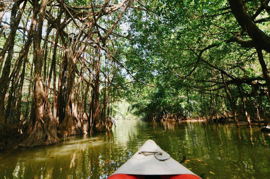 ต้นไทรโบราณขนาดใหญ่ ที่แผ่กิ่งก้านสาขาเหนือผิวน้ำจนกลายเป็น “อุโมงค์ต้นไม้” สุดตระการตา