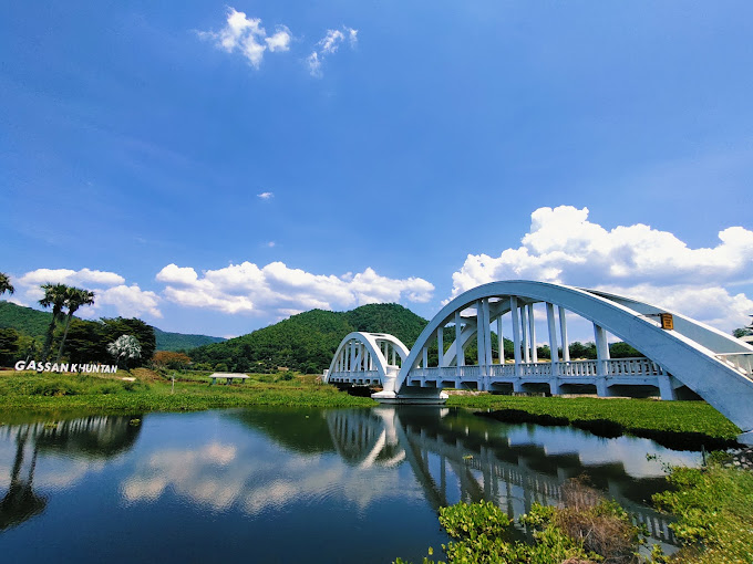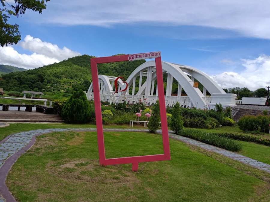 ในเช้าวันที่แสงแดดอ่อนส่องกระทบผิวน้ำ ฉันยืนอยู่หน้าสะพานโค้งสีขาวที่ดูสงบและงดงามราวภาพวาด เสียงลมพัดเอื่อยพาเอาความเย็นสบายของชนบทลำพูนมาสัมผัสผิว 🌸 ที่นี่คือ “สะพานขาวทาชมภู” หรือที่หลายคนเรียกกันอย่างอบอุ่นว่า “สะพานแห่งความรัก” สถานที่ที่ไม่ได้เป็นเพียงจุดถ่ายรูปยอดนิยม แต่เป็นพื้นที่ที่เรื่องราว ความเชื่อ และหัวใจของผู้คนมาบรรจบกันอย่างอ่อนโยน ✨