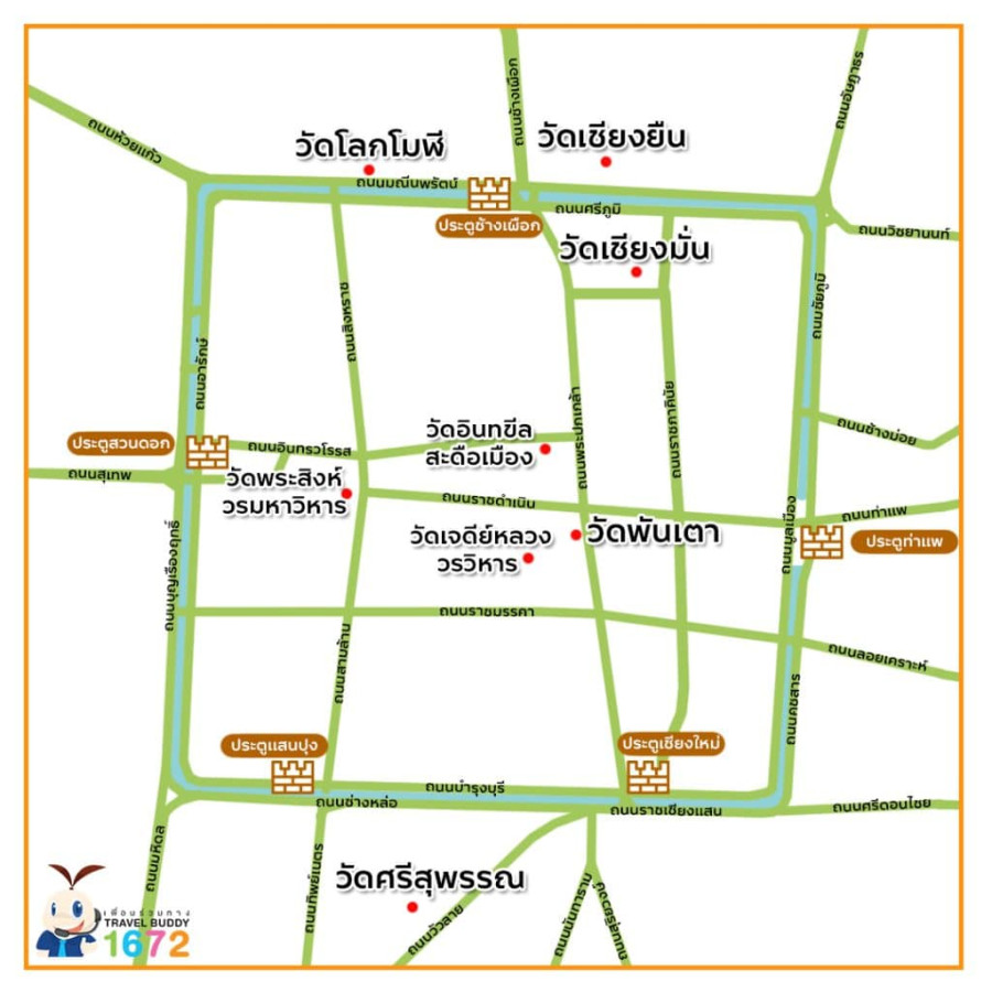 โดยเฉพาะ “คูเมืองเชียงใหม่” ใจกลางเมืองเก่า ที่เปรียบเสมือนแผนที่แห่งศรัทธา มองไปทางไหนก็เห็นวัดสำคัญเรียงรายอยู่ไม่ไกลกัน เหมาะมากสำหรับนักเดินทางสายมู สายบุญ หรือใครที่อยากใช้เวลาหนึ่งวัน เดินไหว้พระ เติมพลังใจแบบไม่เร่งรีบ 🕊️