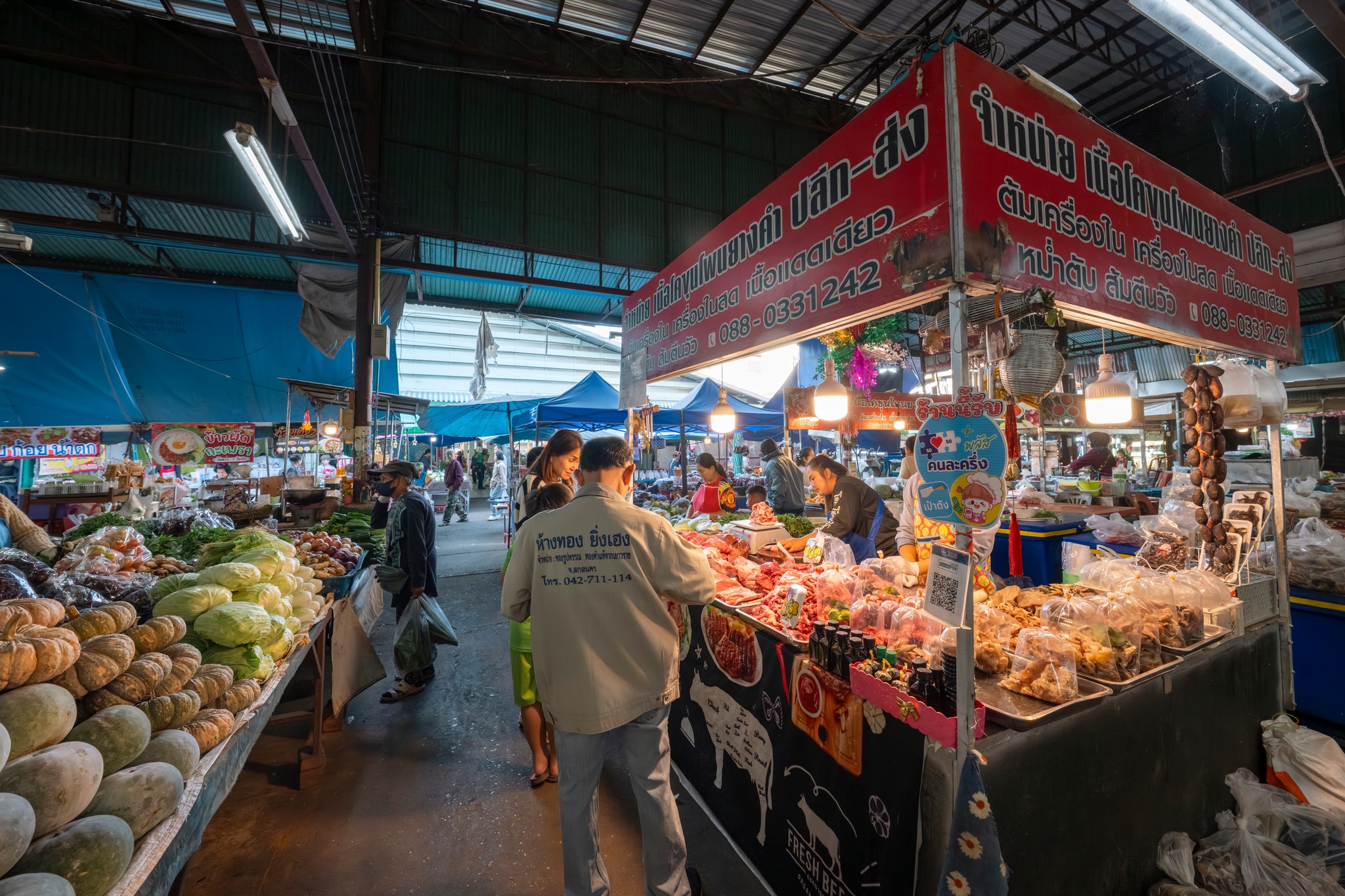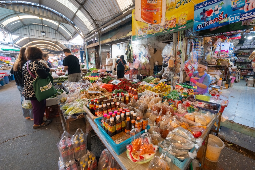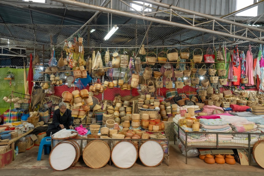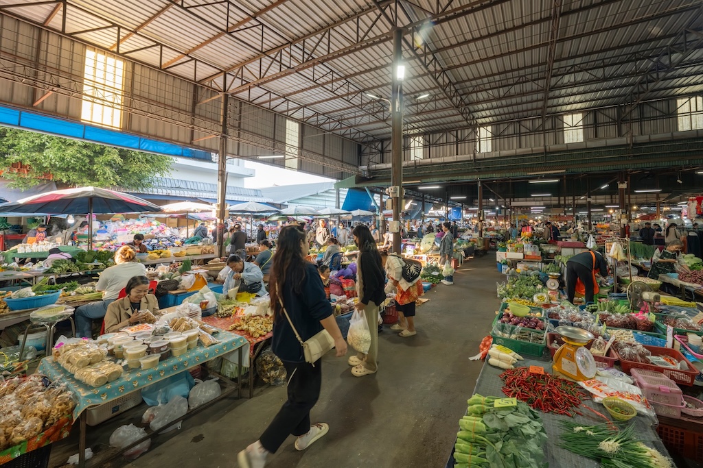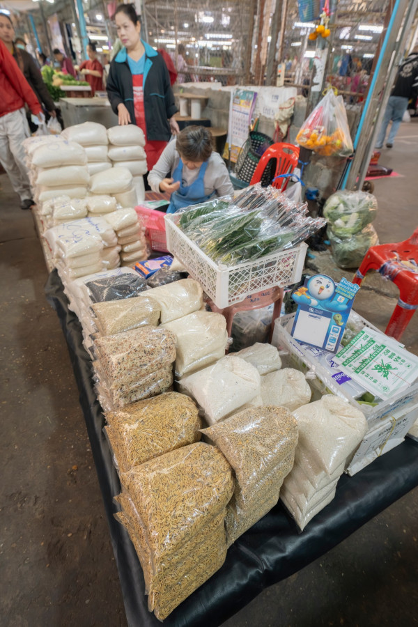 ทันทีที่ก้าวเข้าสู่ตลาด ภาพของแผงผักสดสีเขียวสด เนื้อสัตว์จัดเรียงอย่างเป็นระเบียบ ข้าวสาร อาหารแห้ง หม้อ ถัง กะละมัง เขียง ผ้าทอ รองเท้า และเครื่องจักสานพื้นบ้าน ทำให้รู้สึกเหมือนกำลังเดินอยู่ในพิพิธภัณฑ์มีชีวิตของวิถีอีสาน 🌿🧺 จะหาของกิน ของใช้ หรือวัตถุดิบทำอาหาร ตลาดแห่งนี้แทบมีครบทุกอย่าง