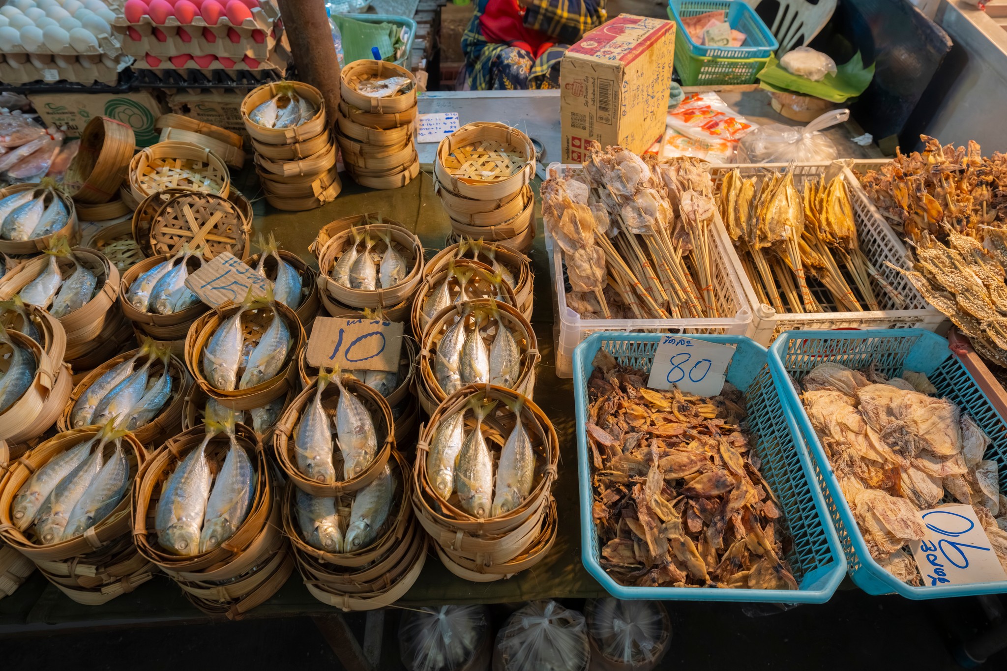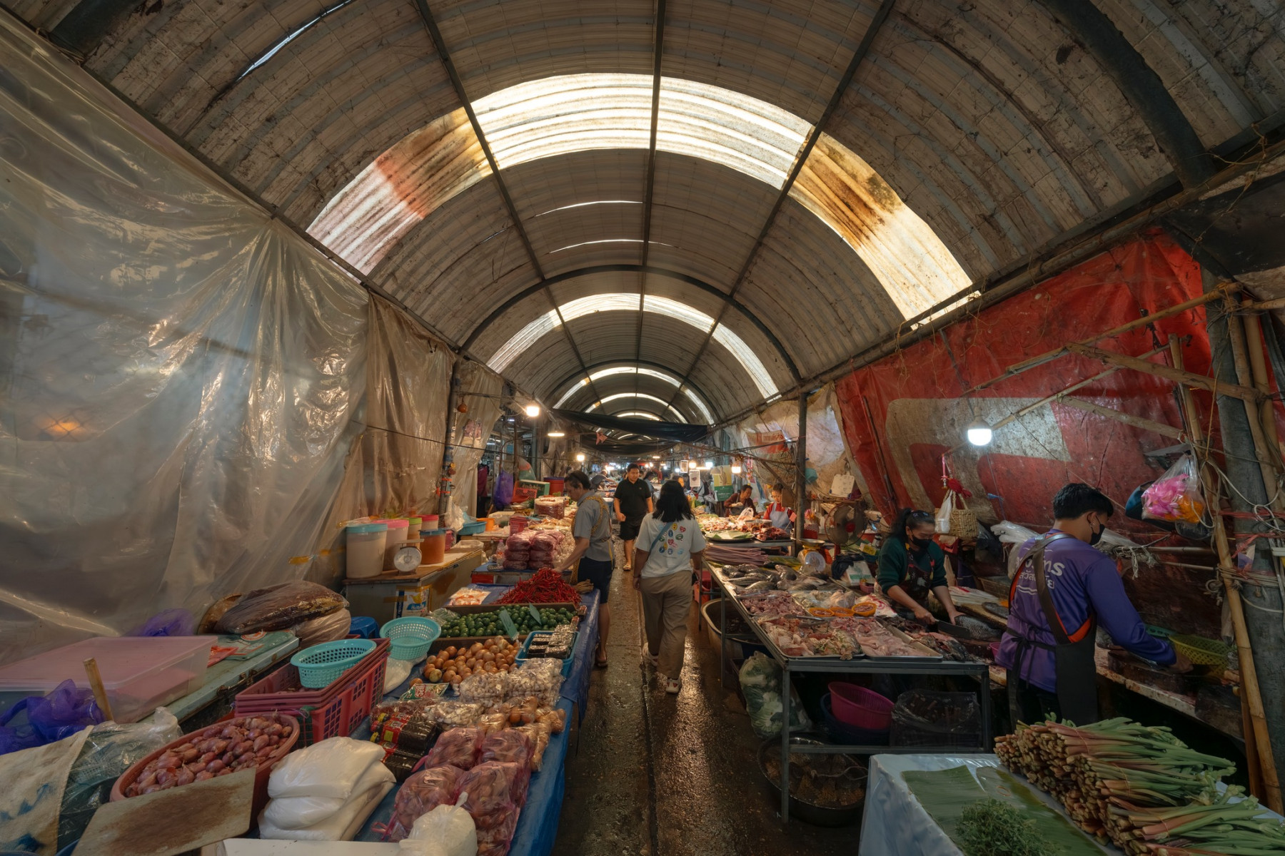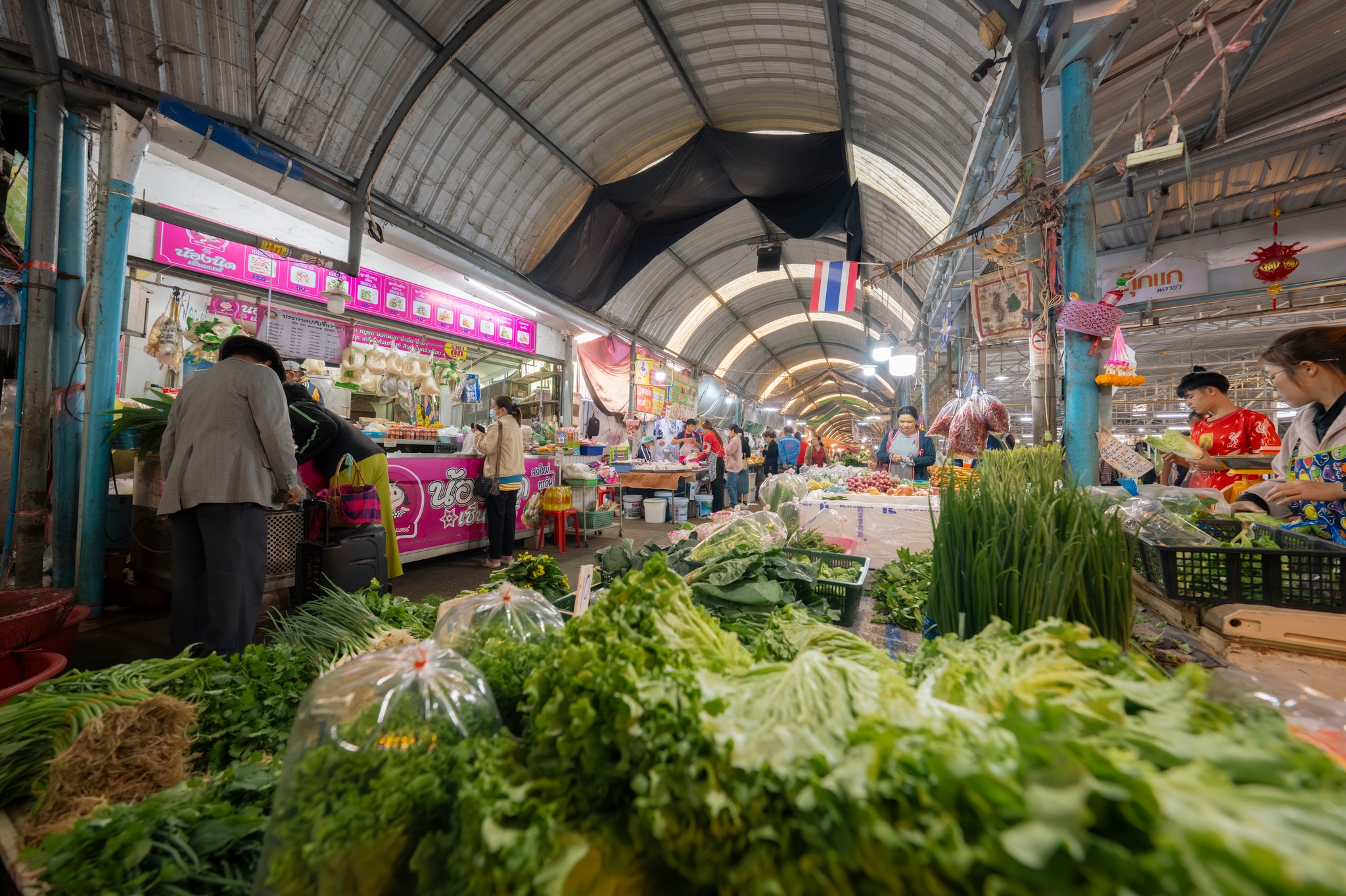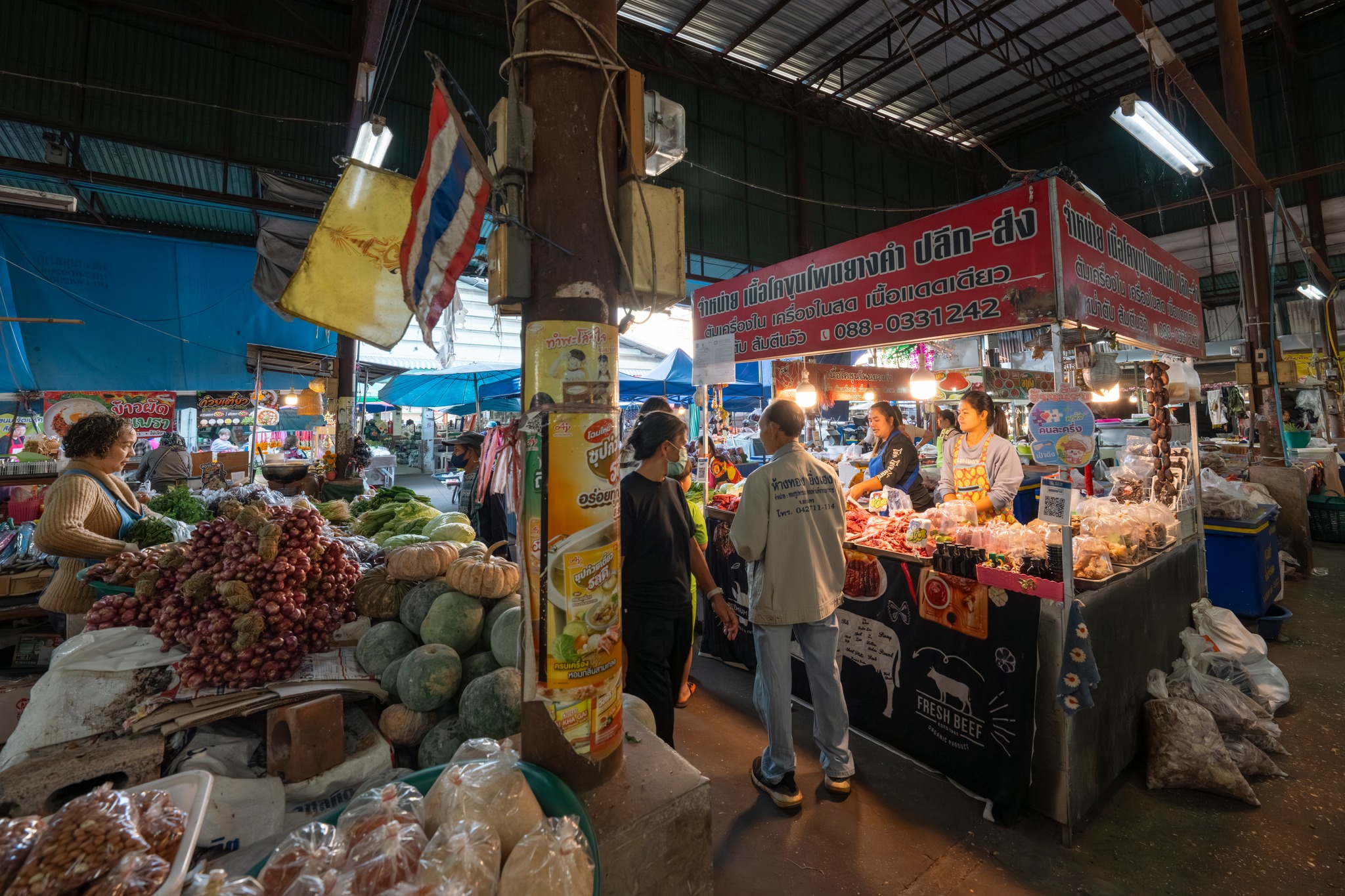 ทันทีที่ก้าวเข้าสู่ตลาด ภาพของแผงผักสดสีเขียวสด เนื้อสัตว์จัดเรียงอย่างเป็นระเบียบ ข้าวสาร อาหารแห้ง หม้อ ถัง กะละมัง เขียง ผ้าทอ รองเท้า และเครื่องจักสานพื้นบ้าน ทำให้รู้สึกเหมือนกำลังเดินอยู่ในพิพิธภัณฑ์มีชีวิตของวิถีอีสาน 🌿🧺 จะหาของกิน ของใช้ หรือวัตถุดิบทำอาหาร ตลาดแห่งนี้แทบมีครบทุกอย่าง