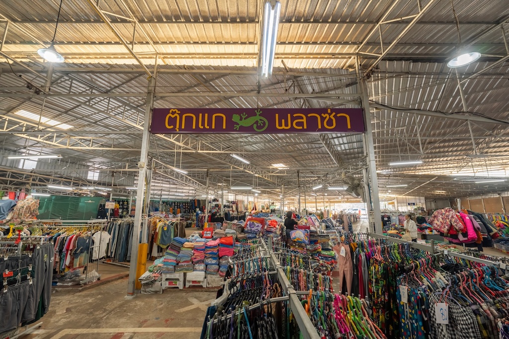 หลังอิ่มเอมกับข้าวโซย ลองเดินต่อไปยังโซน “ตุ๊กแก พลาซ่า” ภายในตลาด ที่รวบรวมเสื้อผ้า รองเท้า ทั้งมือหนึ่งและมือสอง ผ้านวม ชุดเครื่องนอน และผ้าห่มให้เลือกเดินช้อปกันอย่างเพลิดเพลิน 🛍️👟 เป็นอีกมุมหนึ่งของตลาดที่สะท้อนความหลากหลายและความมีชีวิตชีวาของชุมชน