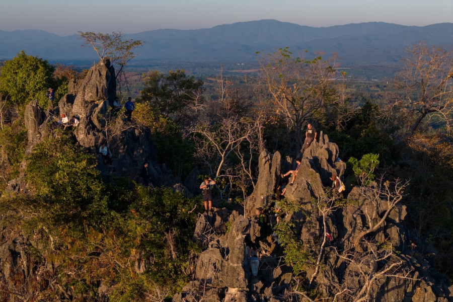 ช่วงสุดท้ายประมาณ 100 เมตร คือไฮไลต์ของการปีนป่ายขึ้นสู่ยอดเขาหินปูน บางช่วงมีสลิงช่วยพยุงตัวเพื่อความปลอดภัย การจับหิน การทรงตัว และการก้าวขึ้นสู่จุดสูงสุด ทำให้หัวใจเต้นแรงด้วยความตื่นเต้น และเมื่อเท้าสัมผัสพื้นยอดเขา ความเหนื่อยล้าทั้งหมดก็ถูกแทนที่ด้วยภาพตรงหน้า 💛