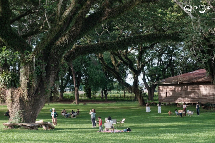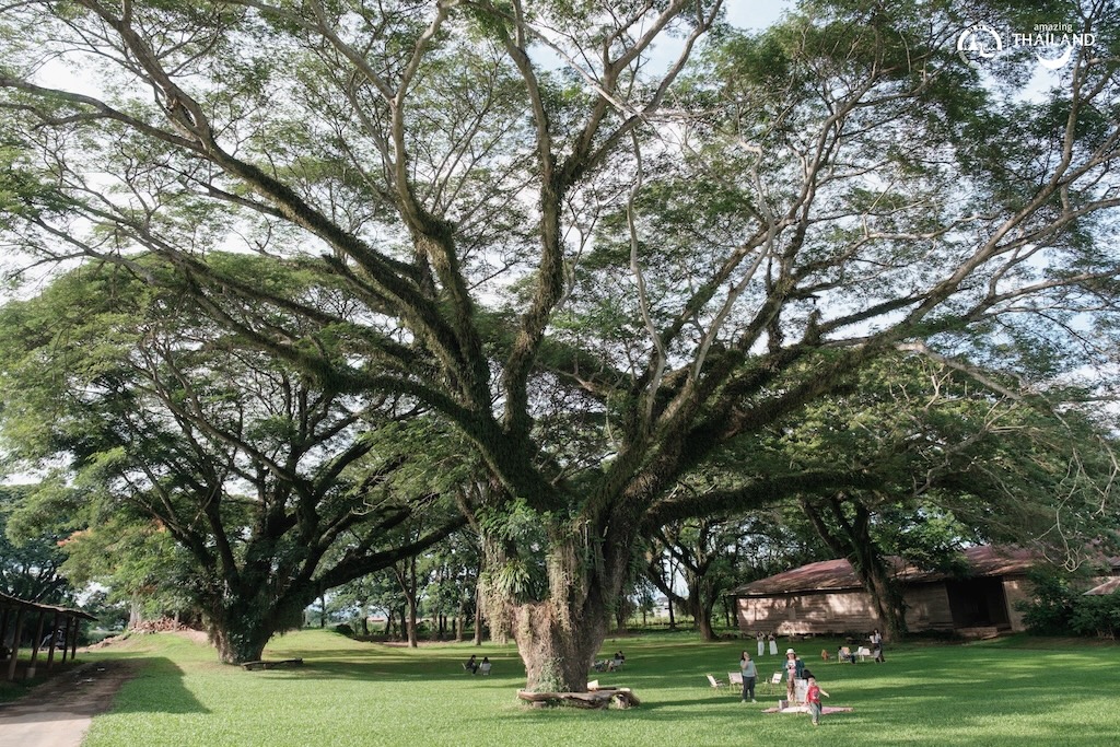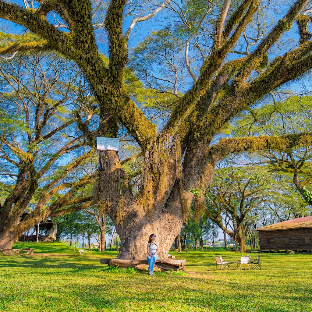 ไฮไลต์ที่ใครมาก็ต้องหยุดมอง คือ “ต้นจามจุรียักษ์” 🌳 ที่ยืนต้นเคียงคู่กับอาคารราวกับงานศิลปะชิ้นเอกของธรรมชาติ กิ่งก้านที่แผ่โค้งลงมาคล้ายอ้อมกอด ทำให้ผู้มาเยือนรู้สึกได้รับการต้อนรับอย่างอ่อนโยน ถ่ายรูปมุมไหนก็ดูดี มีมิติ และเต็มไปด้วยเสน่ห์ของแสงเงาที่ลอดผ่านใบไม้