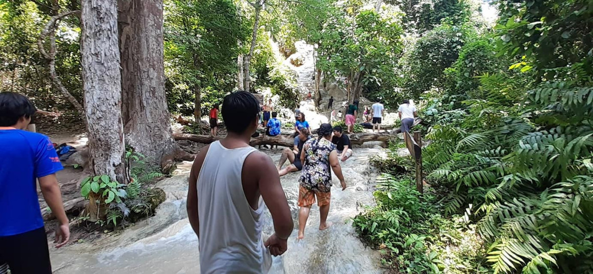 ใส่รองเท้ากันลื่น เพราะบางจุดอาจมีตะไคร่น้ำ