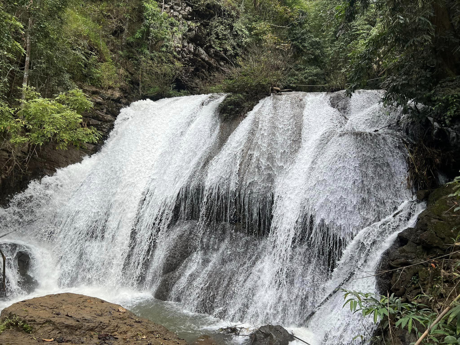 น้ำตกสวยหลายชั้นท่ามกลางป่าใหญ่ สายน้ำเย็นใสไหลลงสู่แอ่งน้ำธรรมชาติ เหมาะสำหรับเล่นน้ำคลายร้อนหลังการเดินป่า