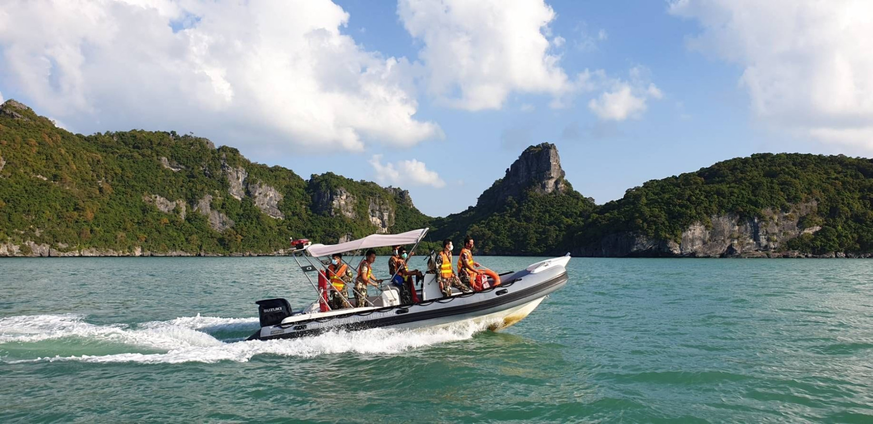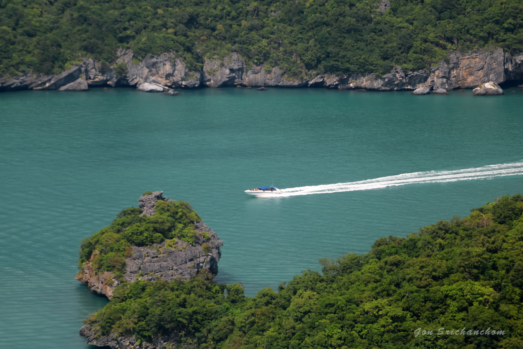 ขับมาที่ท่าเรือดอนสัก จังหวัดสุราษฎร์ธานี จากนั้นนั่งเรือต่อไปยังหมู่เกาะอ่างทอง