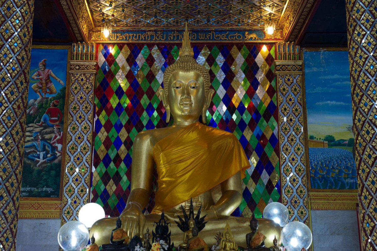 สถาปัตยกรรมทรงแปดเหลี่ยมอันหาชมได้ยาก ภายในประดิษฐานพระพุทธรูปยืนในซุ้มโค้งสามวง มีเสน่ห์แห่งศิลปกรรมหริภุญชัยที่ทรงคุณค่า