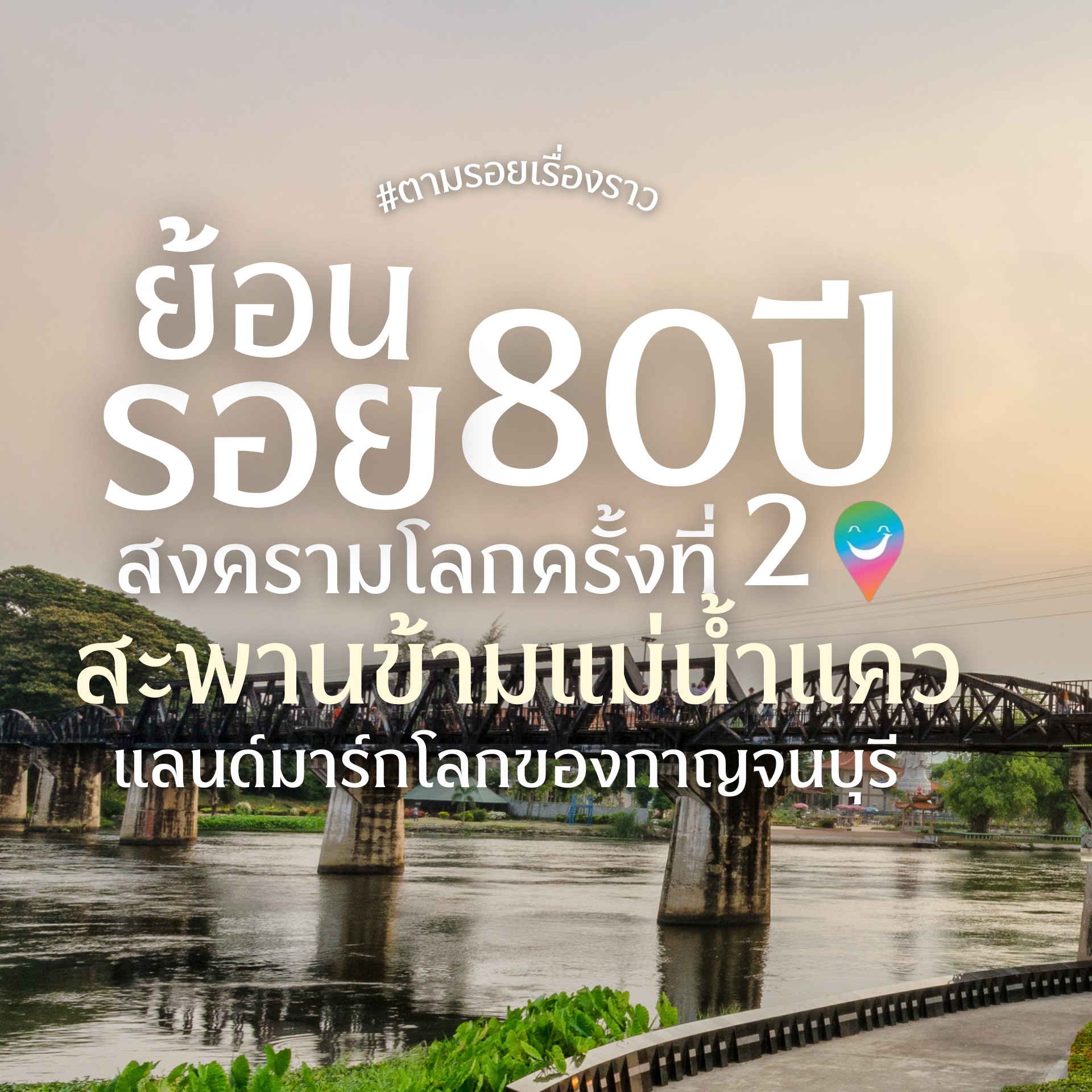 ย้อนรอย 80 ปีสงครามโลกครั้งที่ 2 จากร่องรอยสงครามสู่ “สะพานข้ามแม่น้ำแคว” แลนด์มาร์กโลกของกาญจนบุรี 🌏🕊️ เมื่อเอ่ยถึงสงครามโลกครั้งที่ 2 ภาพในหัวของใครหลายคนอาจเป็นสนามรบยุโรป เครื่องบินทิ้งระเบิด หรือเรือรบกลางมหาสมุทร 🌍✈️ แต่มีสถานที่หนึ่งในประเทศไทย ที่ถูกบันทึกไว้ในเอกสารทหารของทั้งสหรัฐอเมริกาและอังกฤษ และเชื่อมโยงกับมหาสงครามครั้งนั้นอย่างลึกซึ้ง