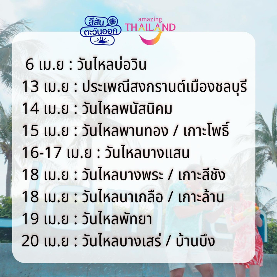 💦 สงกรานต์ & วันไหลชลบุรี 2568 | รวมวันจัดงานแต่ละพื้นที่!