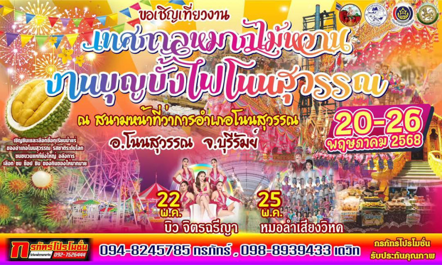 ชิม ช้อป ทุเรียนน้ำแร่ พร้อมชมขบวนแห่บั้งไฟสุดตระการตาในบุรีรัมย์!