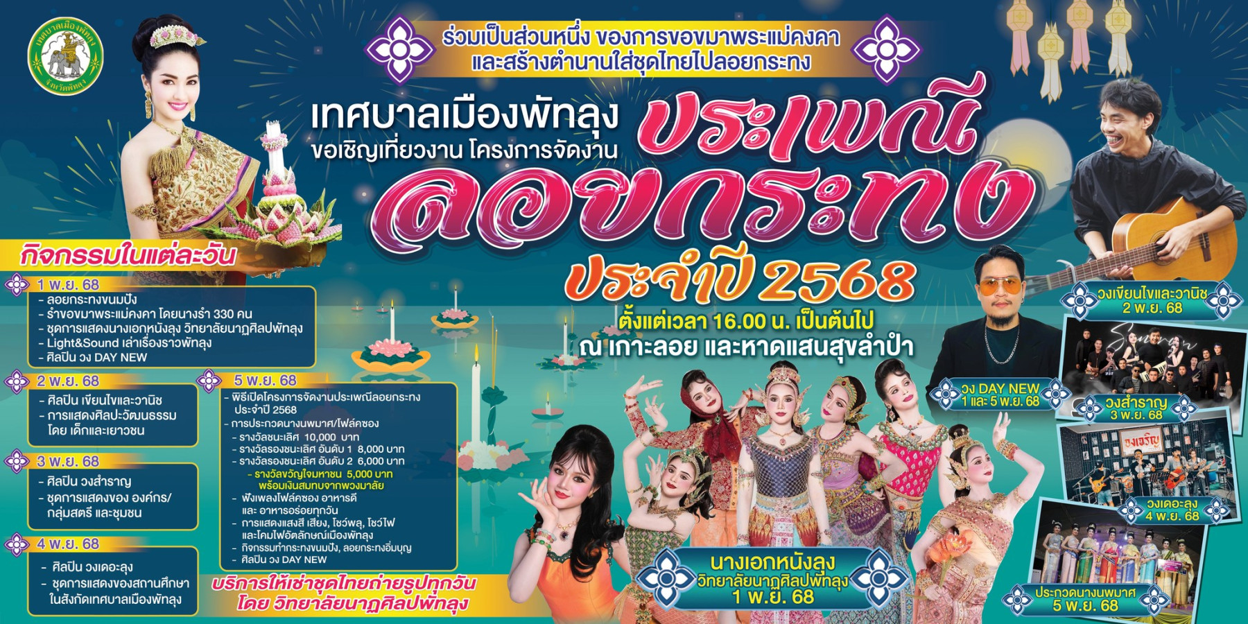 ThailandTravel | 1 Nov - 5 Nov 2025 | 19 | Thai cultural festival Southern Thailand festival ที่เที่ยวพัทลุง2568 Phatthalung festival 2025 Southern Thailand culture Nang Noppamas contest ประเพณีลอยกระทงไทย ลอยกระทงพัทลุง เกาะลอยลำปำ หาดแสนสุขลำปำ เที่ยวพัทลุงหน้าหนาว งานลอยกระทงภาคใต้ เที่ยวลำปำพัทลุง กิจกรรมลอยกระทง งานนางนพมาศพัทลุง เที่ยวงานลอยกระทง Lam Pam Island Phatthalung Loy Krathong in Thailand Loy Krathong Phatthalung Lam Pam Island Saen Suk Lam Pam Beach Loy Krathong southern Thailand full moon festival Thailand Phatthalung travel guide eco-friendly Loy Krathong Lam Pam travel Loy Krathong by the lake Thailand festival calendar things to do in Phatthalung