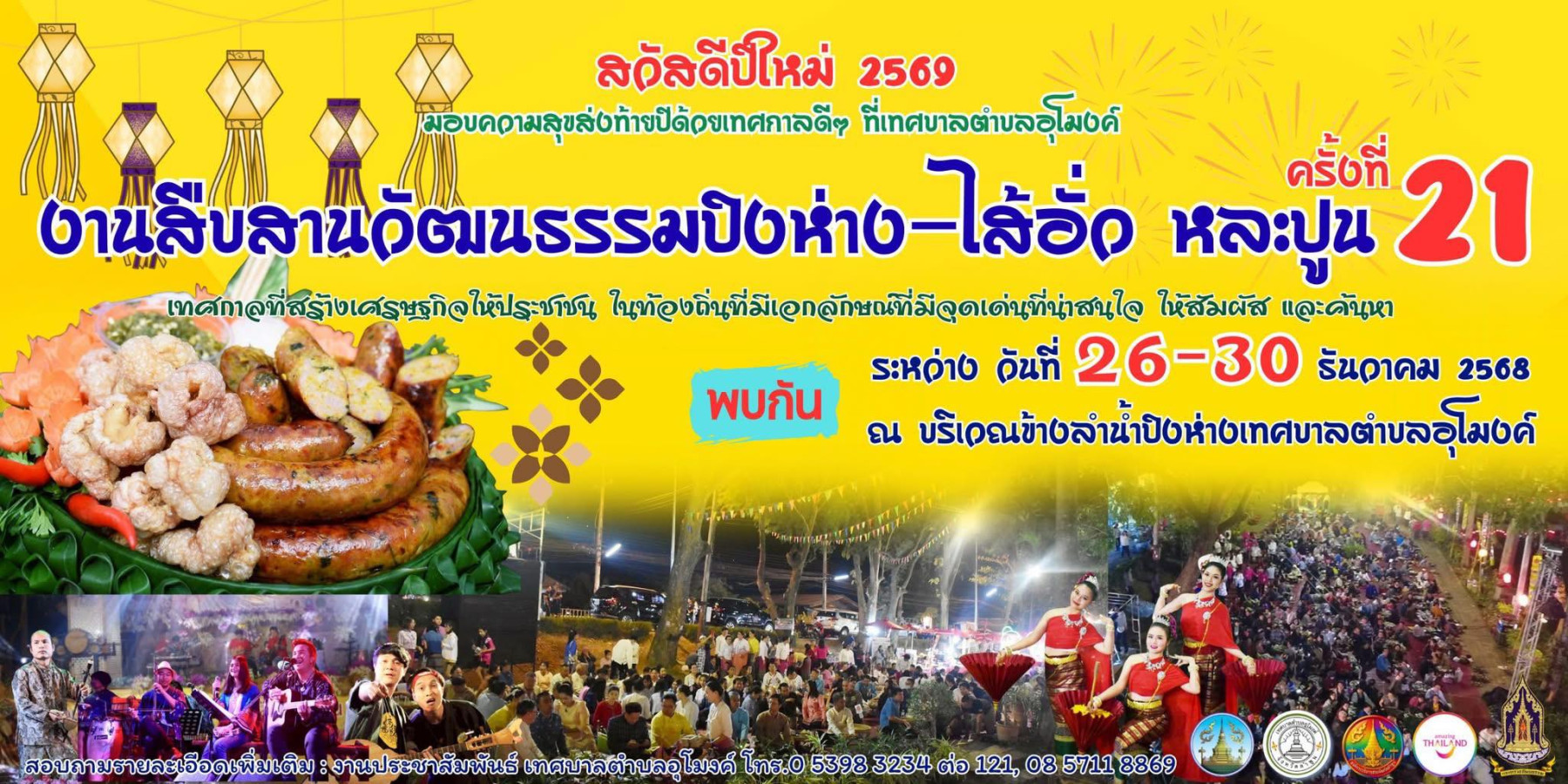 ปลายปีที่ลำพูนอบอวลด้วยกลิ่นหอมของเครื่องเทศและเสียงหัวเราะจากผู้คนในท้องถิ่น 🎶 หากได้มาสัมผัส “งานเชิดชูวัฒนธรรม ซอมพอไสว ปิงห่าง ไส้อั่วหละปูน” ณ ตำบลอุโมงค์ อำเภอเมืองลำพูน ระหว่างวันที่ 26 – 30 ธันวาคม 2568 คุณจะได้พบกับความงดงามของวัฒนธรรมล้านนาแท้ ๆ ที่หลอมรวมกับรสชาติอันเป็นเอกลักษณ์ของ “ไส้อั่วหละปูน” และบรรยากาศแห่งความอบอุ่นริมฝั่งน้ำปิงห่าง 🌿
