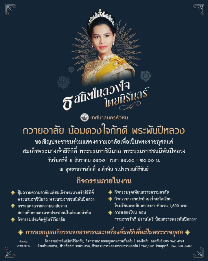 ร่วมรำลึก “ธ สถิตในดวงใจ ไทยนิรันดร์” งานถวายความอาลัยแด่พระบรมราชชนนีพันปีหลวง ณ อุทยานราชภักดิ์ หัวหิน 1 ธ.ค. 2568