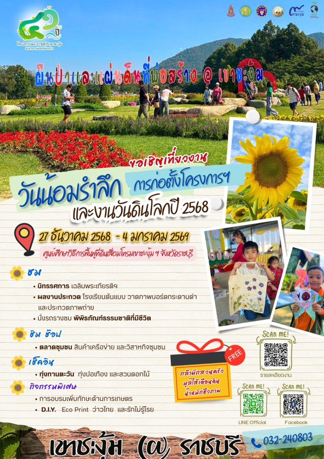 วันน้อมรำลึกการก่อตั้งโครงการฯ และงานวันดินโลก 2568 — เรียนรู้ วิถีพอเพียง ท่ามกลางธรรมชาติที่งดงาม ณ เขาชะงุ้ม ราชบุรี