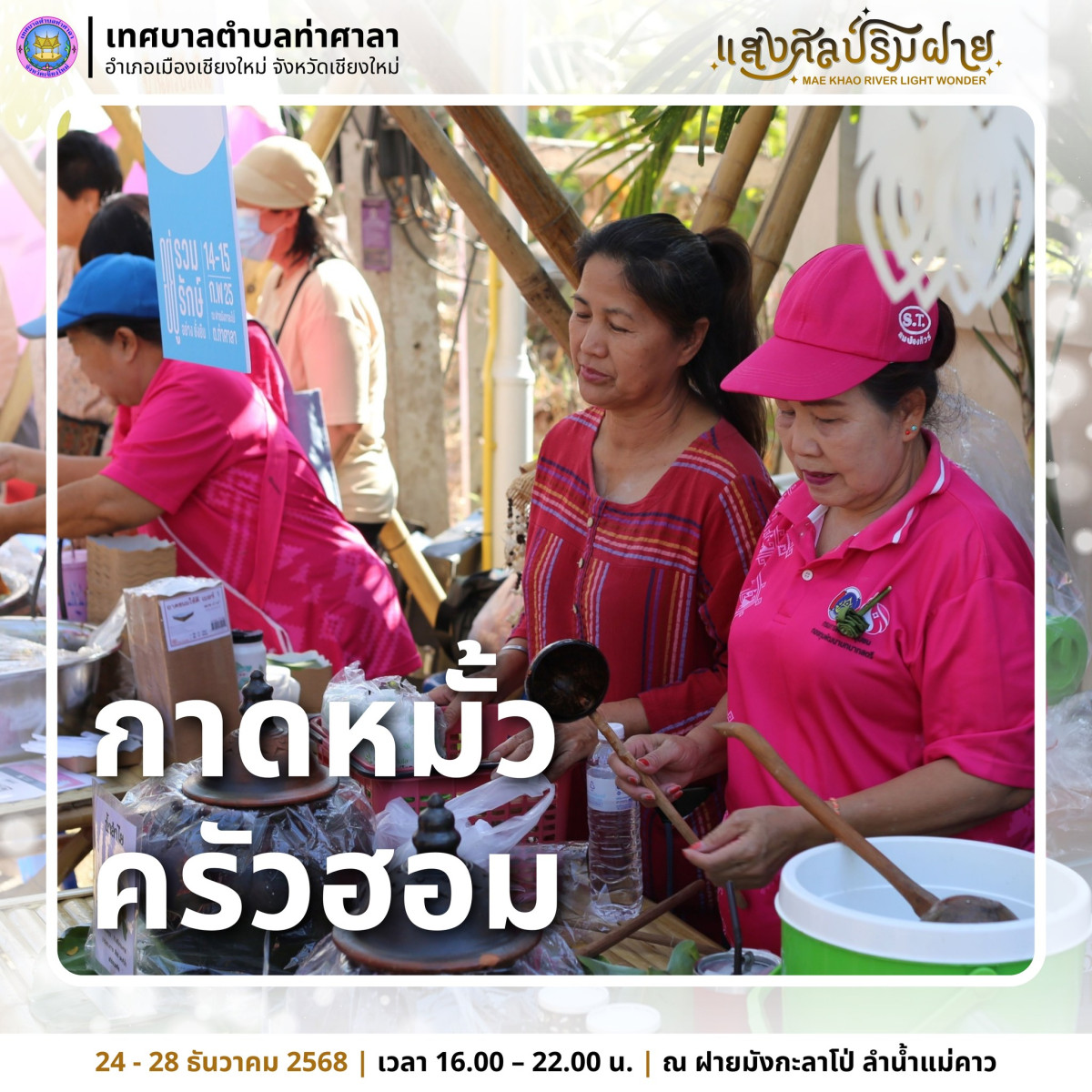 อย่าลืมลองอาหารชุมชนที่ “กาดหมั้ว ครัวฮอม” เพราะคือหนึ่งในไฮไลต์ของงาน 🍲✨