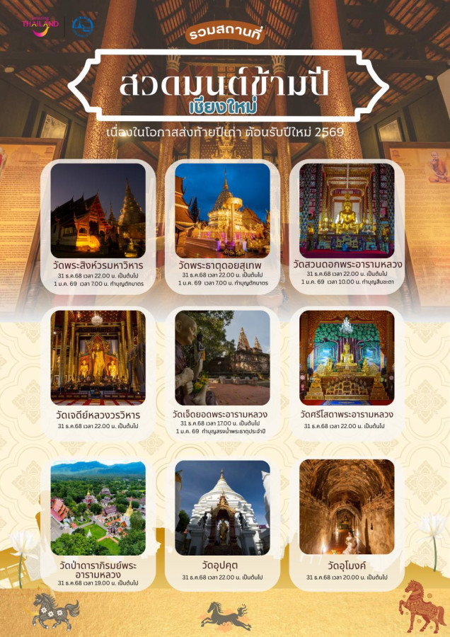 ชวนสวดมนต์ข้ามปี – ตักบาตรปีใหม่ 2569 ในเชียงใหม่สุดเป็นสิริมงคล