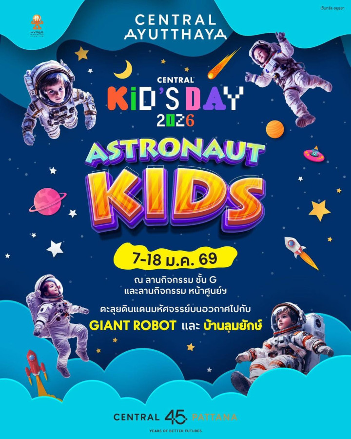 Central Ayutthaya Kid’s Day 2026 ผจญภัยอวกาศของนักสำรวจตัวจิ๋ว กับสนามเด็กเล่นแห่งทักษะอนาคต 🚀✨