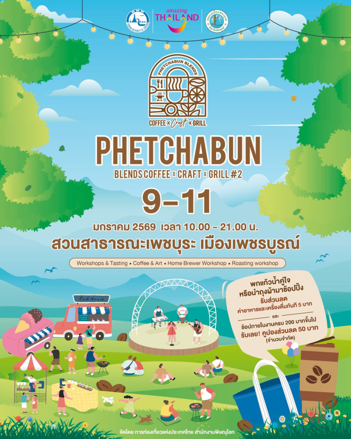 ถ้าการเดินทางของคุณขาดไม่ได้กับกลิ่นกาแฟหอมๆ เสียงดนตรีเบาๆ และบรรยากาศสบายใจท่ามกลางผู้คนที่รักในรสชาติและงานคราฟต์ งาน PHETCHABUN BLENDS COFFEE x CRAFT x GRILL #2 คือเหตุผลดีๆ ที่ควรปักหมุดมาเยือนจังหวัดเพชรบูรณ์ในต้นปีนี้ ✨