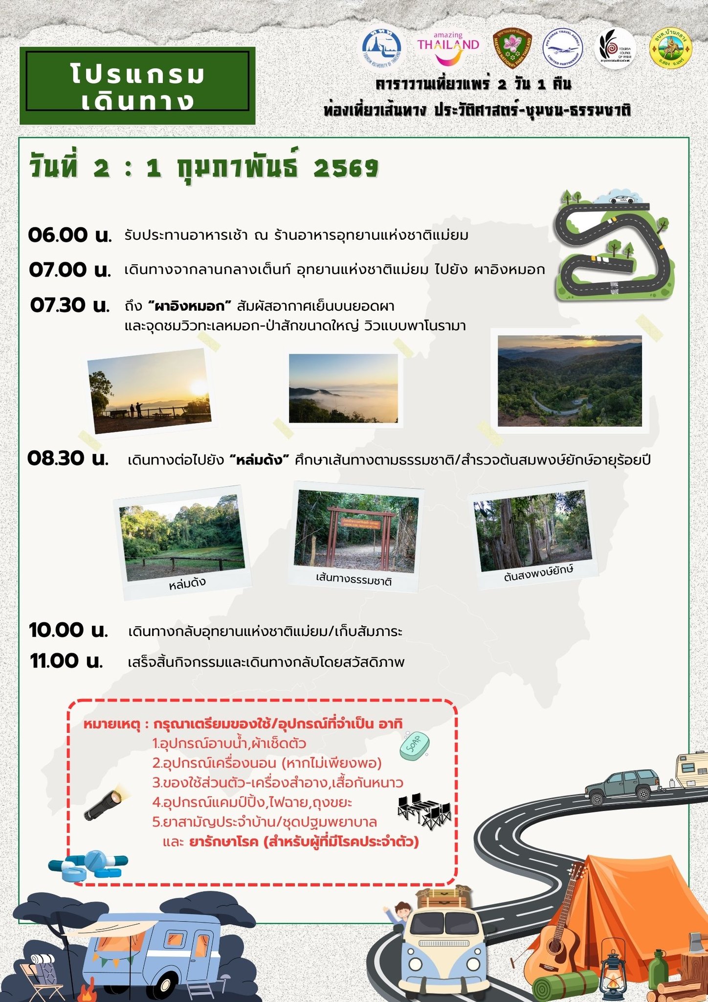 หมายเหตุ: ผู้เข้าร่วมกิจกรรมต้องนำรถยนต์มาเอง และในบางพื้นที่ของอุทยานจะมีสัญญาณโทรศัพท์จำกัด 📵