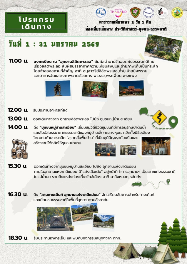 กิจกรรมจัดขึ้นระหว่าง 31 มกราคม – 1 กุมภาพันธ์ 2569 รวมระยะเวลา 2 วัน 1 คืน
