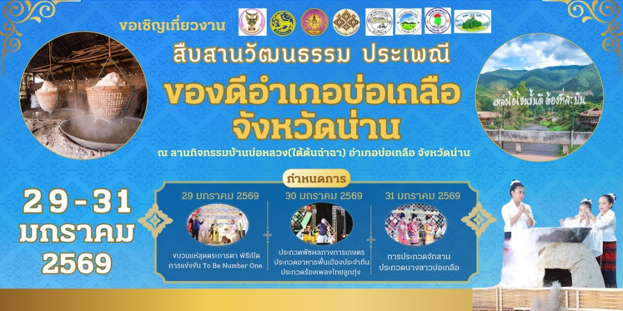 หากคุณกำลังมองหาการเดินทางที่มากกว่าการถ่ายรูปสวย ๆ งาน “สืบสานวัฒนธรรม ประเพณีของดีอำเภอบ่อเกลือ จังหวัดน่าน” คือโอกาสที่จะได้สัมผัสหัวใจของชุมชน เรียนรู้วิถีชีวิต และซึมซับคุณค่าของวัฒนธรรมไทยอย่างลึกซึ้ง