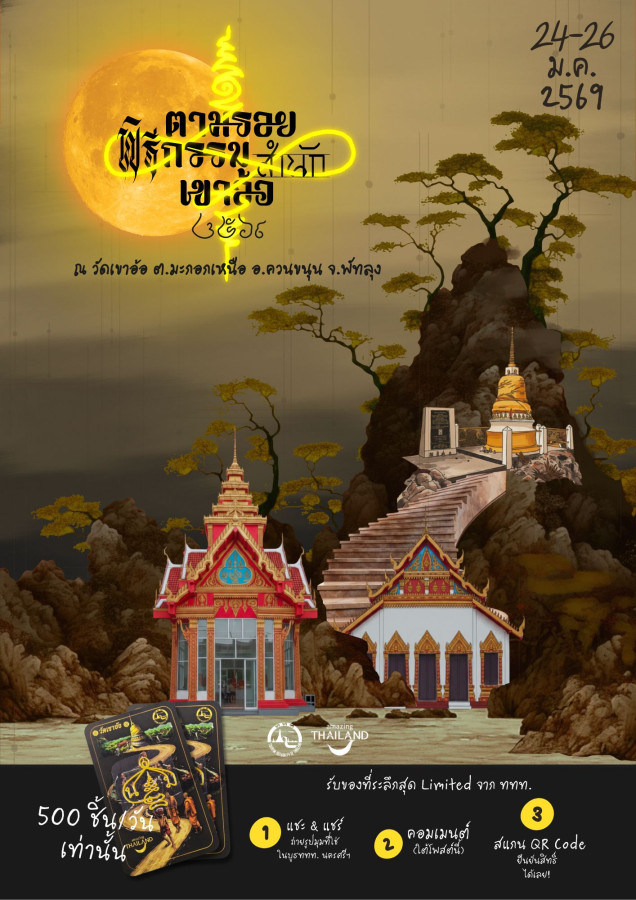 หากการเดินทางของคุณไม่ได้ต้องการแค่ภาพสวย ๆ แต่ต้องการ “พลัง” ที่สัมผัสได้จริง งาน ตามรอยพิธีกรรมสำนักเขาอ้อ ๒๕๖๙ คือปลายทางที่นักเดินทางสายวัฒนธรรมและสายศรัทธาไม่ควรพลาด 🌿 เมื่อก้าวเท้าเข้าสู่ วัดเขาอ้อ คุณจะรู้สึกถึงบรรยากาศบางอย่างที่แตกต่าง ความสงบ ความขลัง และพลังศรัทธาที่แผ่ซ่านอยู่ท่ามกลางขุนเขาและป่าเขียวขจีของจังหวัดพัทลุง 🏞️