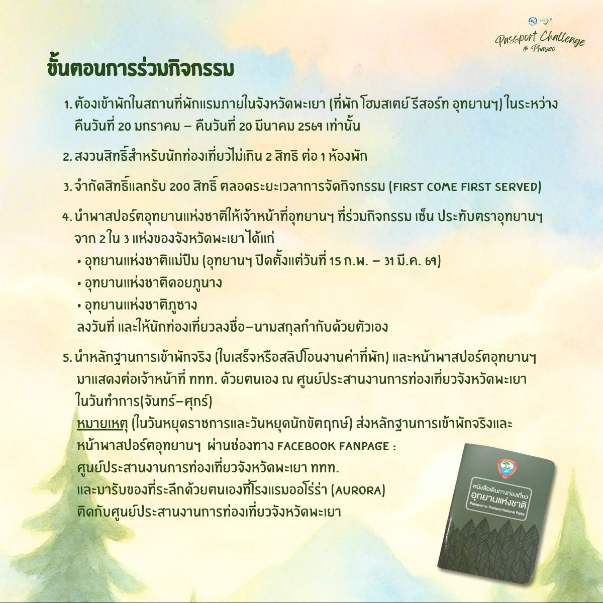 หัวใจของกิจกรรมคือการออกเดินทางไปยังอุทยานแห่งชาติในจังหวัดพะเยา แล้วสะสมตราประทับสุดเท่ลงใน Passport 🖋️