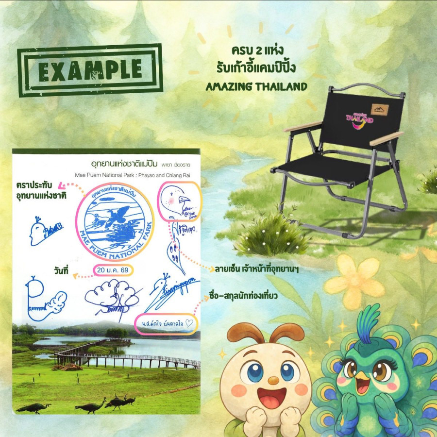 สะสมตราประทับครบ 2 ใน 3 แห่ง รับ “เก้าอี้แคมป์ปิ้ง Amazing Thailand” ฟรี 🎉⛺