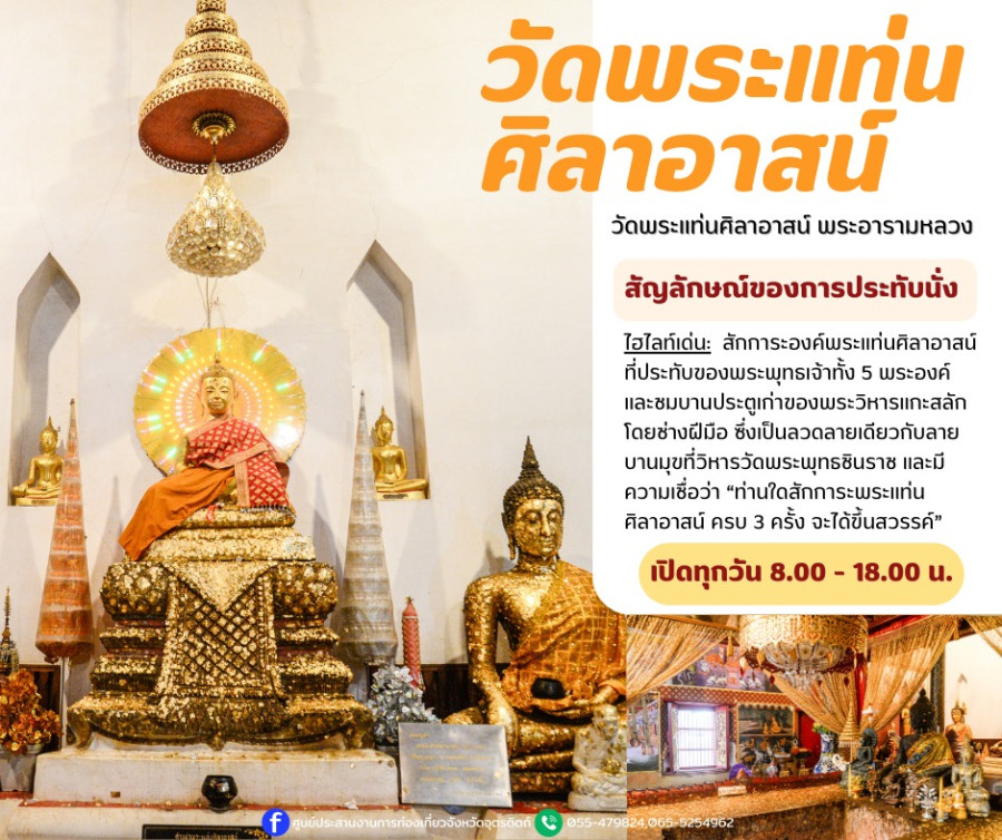 งานนมัสการ พระแท่นศิลาอาสน์ เป็นงานบุญใหญ่ที่ชาวอุตรดิตถ์สืบทอดกันมาอย่างยาวนาน 🌸 พระแท่นศิลาอาสน์ถือเป็นปูชนียสถานสำคัญในพุทธศาสนา เชื่อกันว่าเป็นสถานที่ศักดิ์สิทธิ์ที่พระพุทธเจ้าเคยประทับนั่ง จึงเป็นศูนย์รวมศรัทธาของผู้คนจากทั่วสารทิศ