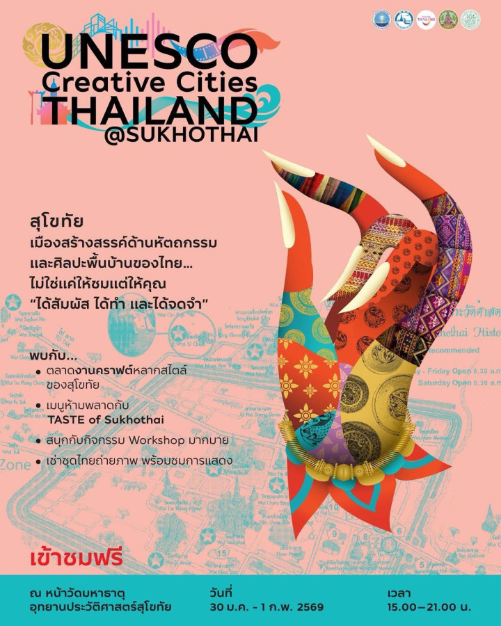 สุโขทัยได้รับการยอมรับในฐานะเมืองสร้างสรรค์ด้านหัตถกรรมและศิลปะพื้นบ้าน ภายใต้เครือข่ายเมืองสร้างสรรค์ของยูเนสโก งาน Unesco Creative Cities Thailand @SUKHOTHAI จึงถือเป็นพื้นที่สำคัญในการถ่ายทอดอัตลักษณ์งานคราฟต์ไทย ตั้งแต่อดีตจนถึงปัจจุบัน ผ่านการออกแบบ การทำอาหาร งานหัตถกรรม และการแสดงทางวัฒนธรรม