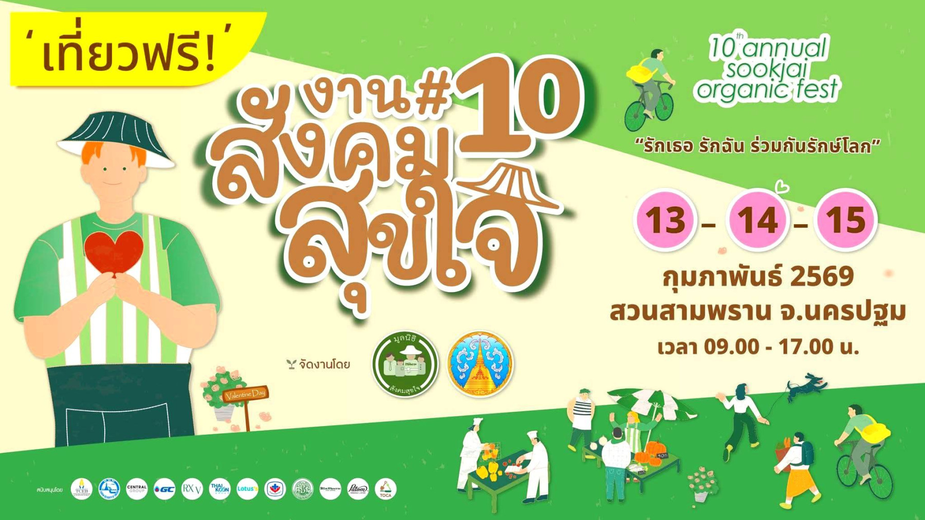 แนวคิดประจำปี “รักเธอ รักฉัน ร่วมกันรักษ์โลก” ถูกเลือกมาอย่างลงตัวกับช่วงเทศกาลแห่งความรัก ชวนให้ทุกคนแสดงความรักผ่านการเลือกกิน เลือกใช้ และเลือกสนับสนุนสิ่งดี ๆ ที่เป็นมิตรต่อโลก 🌱