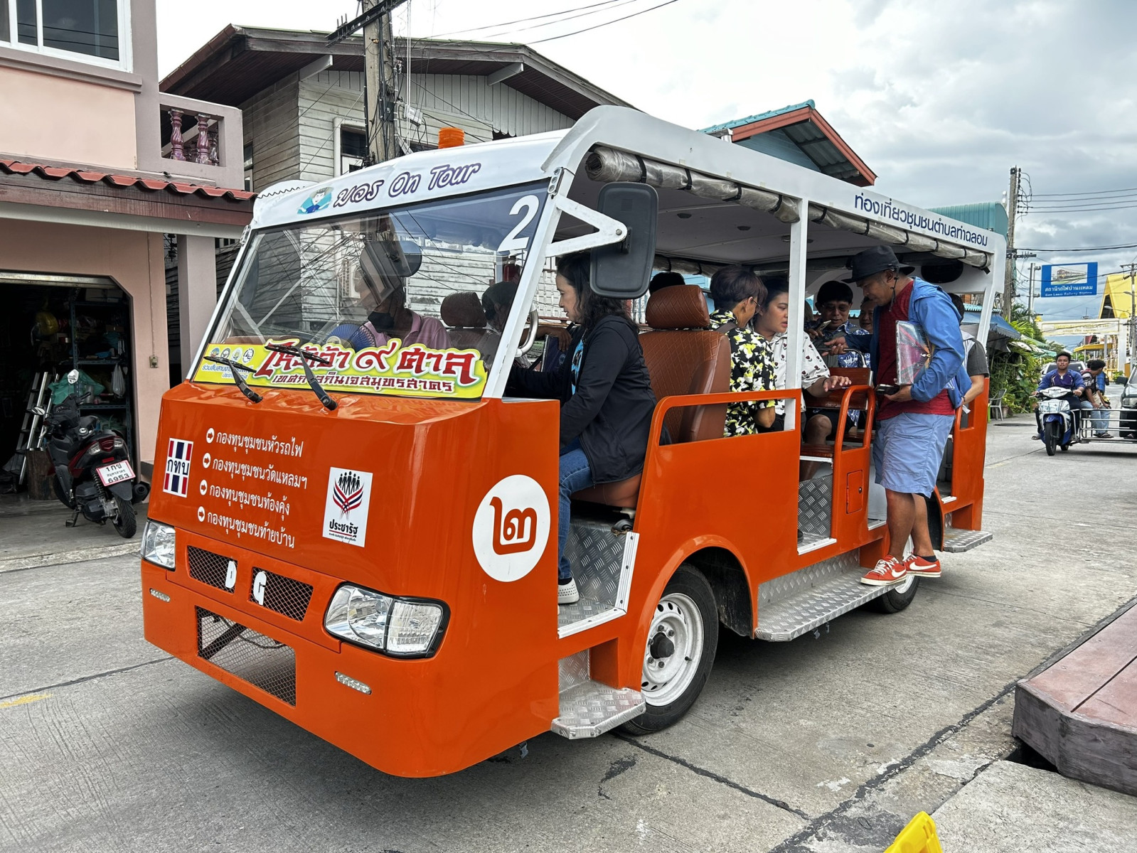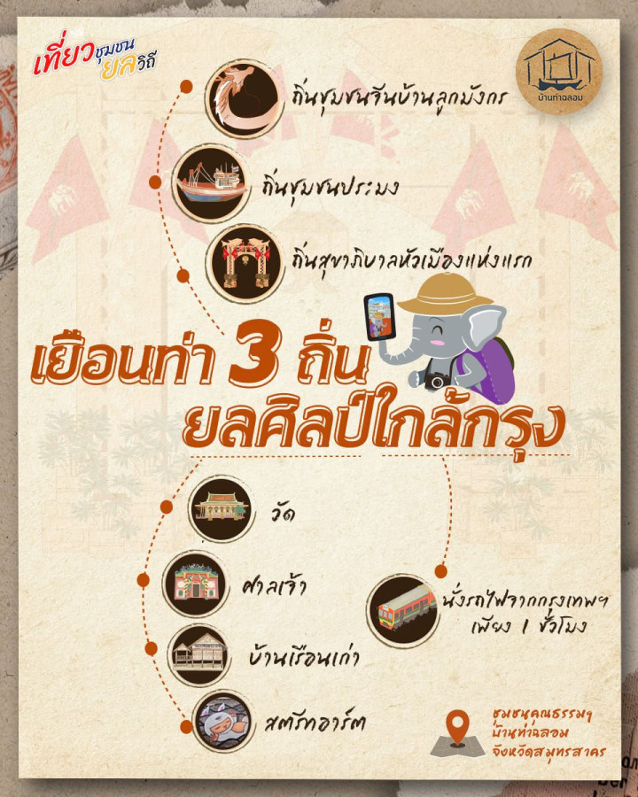 ไฮไลต์ที่พลาดไม่ได้คือ การนั่งรถรางยลวิถีชุมชน 🚋 พาเที่ยวรอบท่าฉลอม พร้อมสะสมตราประทับครบ 6 จุด เพื่อนำไปแลกรางวัลสุดพิเศษ เป็นกิจกรรมที่ทั้งสนุกและได้เรียนรู้ไปพร้อมกัน