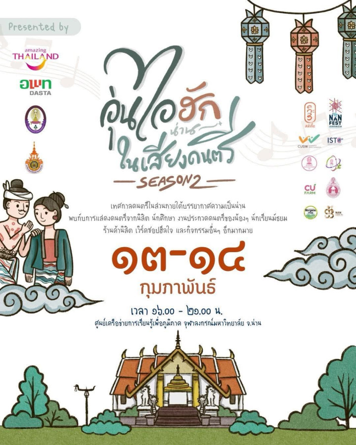 เทศกาลนี้สะท้อนตัวตนของเมืองน่านอย่างชัดเจน—เมืองที่ไม่เร่งรีบ ให้คุณค่าแก่ความเรียบง่าย ความเอื้ออาทร และการอยู่ร่วมกันอย่างกลมกลืน เสียงเพลงจากนิสิต นักศึกษา และเยาวชนในพื้นที่ คือพลังสร้างสรรค์ที่ช่วยหล่อเลี้ยงหัวใจของชุมชน พร้อมส่งต่อแรงบันดาลใจให้ผู้มาเยือนได้สัมผัสความงดงามจาก “คน” และ “พื้นที่” อย่างแท้จริง 🌸