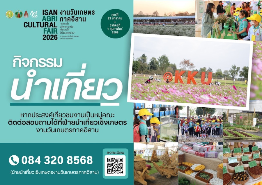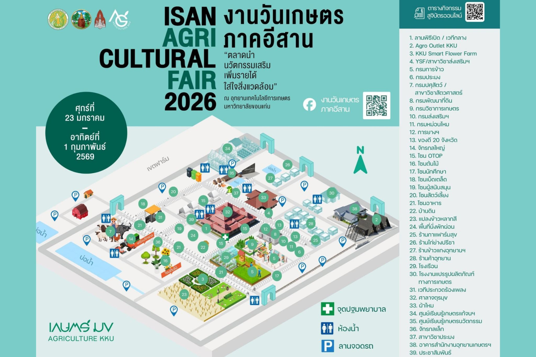 งานจัดขึ้นระหว่างวันที่ 23 มกราคม – 1 กุมภาพันธ์ 2569 ณ อุทยานเทคโนโลยีการเกษตร มหาวิทยาลัยขอนแก่น ศูนย์กลางองค์ความรู้ด้านเกษตรกรรมของภาคตะวันออกเฉียงเหนือ ที่เปิดพื้นที่ให้ทุกคนเข้ามาเรียนรู้ ทดลอง และสัมผัสเกษตรยุคใหม่อย่างใกล้ชิด 🏞️