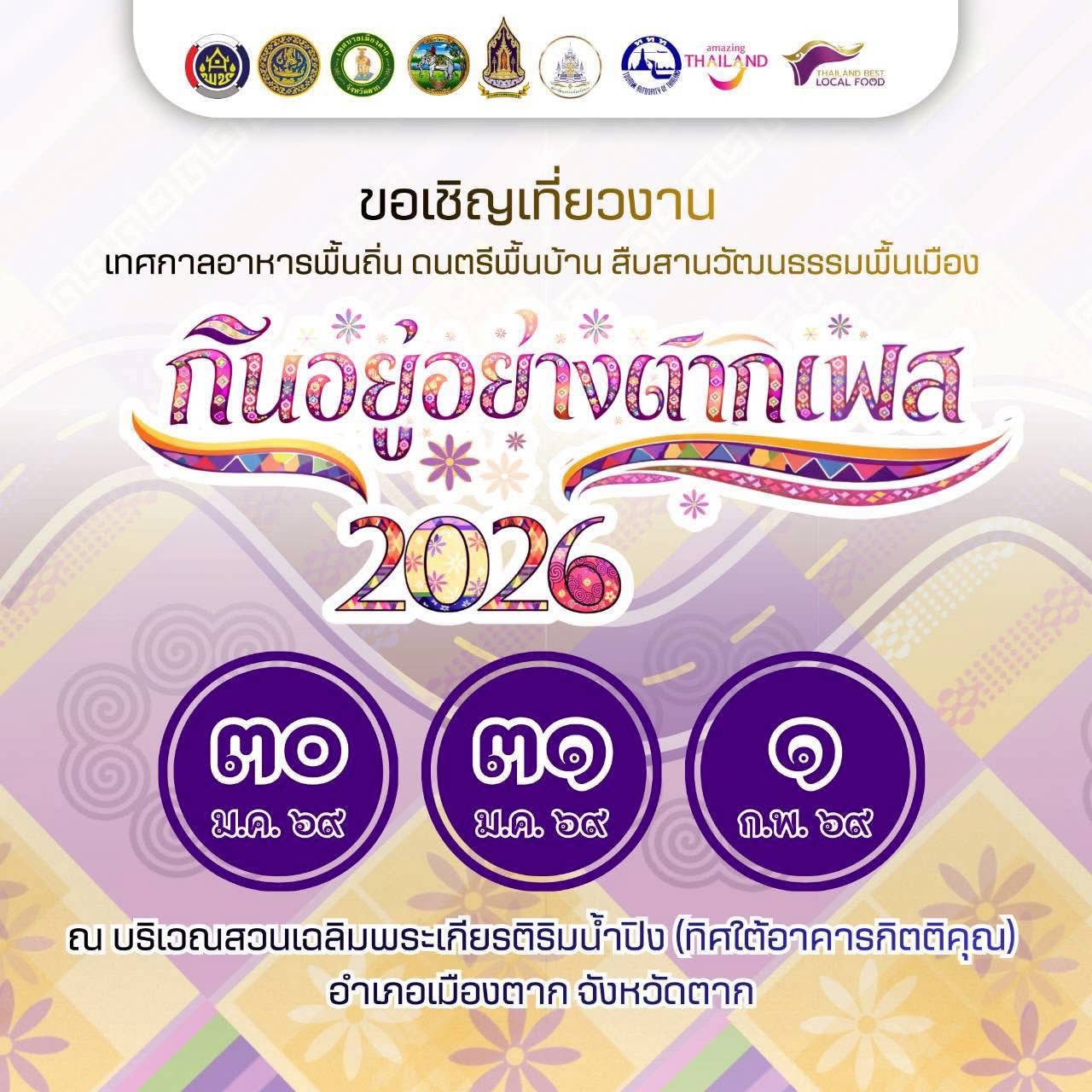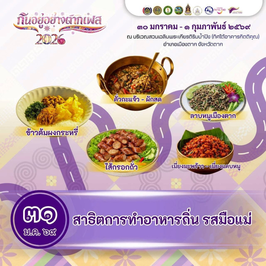 กินอยู่อย่างตากเฟส 2026 : อร่อยแบบบ้านๆ อบอุ่นแบบตาก สัมผัสวัฒนธรรมริมปิงในวันสบายๆ 🌿✨