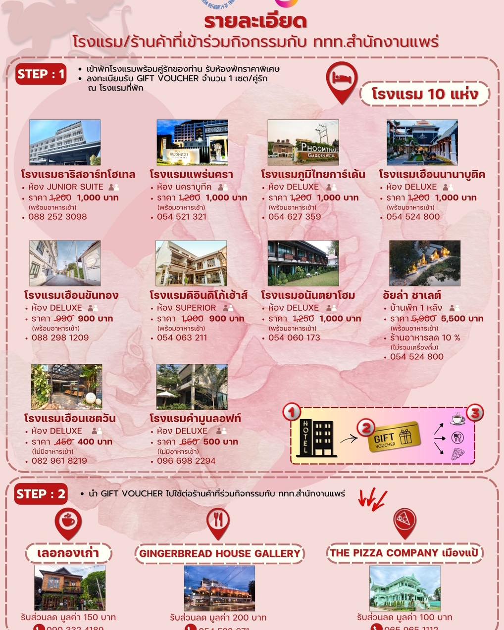แคมเปญนี้จัดโดย การท่องเที่ยวแห่งประเทศไทย สำนักงานแพร่ ร่วมกับสถานประกอบการโรงแรมและที่พักในจังหวัดแพร่ เพื่อส่งเสริมการท่องเที่ยวเชิงคุณค่าในช่วงเดือนแห่งความรัก