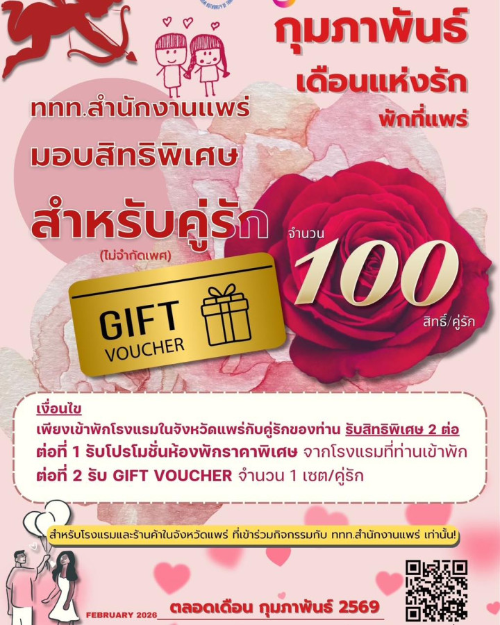 แคมเปญ “กุมภาพันธ์…เดือนแห่งรัก พักที่แพร่” จึงเกิดขึ้นเพื่อชวนคู่รักทุกเพศ ทุกวัย รวมถึง LGBTQ+ มาสร้างความทรงจำดีๆ ร่วมกัน ท่ามกลางเมืองเก่าที่เรียบง่าย แต่เปี่ยมด้วยหัวใจ ✨