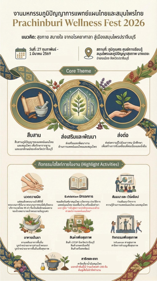 Prachinburi Wellness Fest 2026 – สุขกาย สบายใจ จากอโรคยาศาลา สู่เมืองสมุนไพรปราจีนบุรี 🌿✨