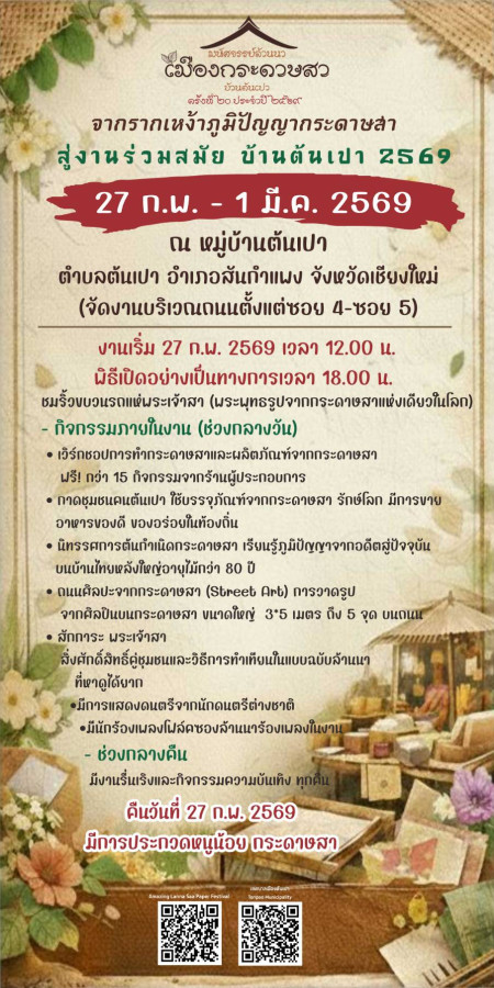 จากรากเหง้าภูมิปัญญากระดาษสา สู่งานร่วมสมัยบ้านต้นเปา 2569