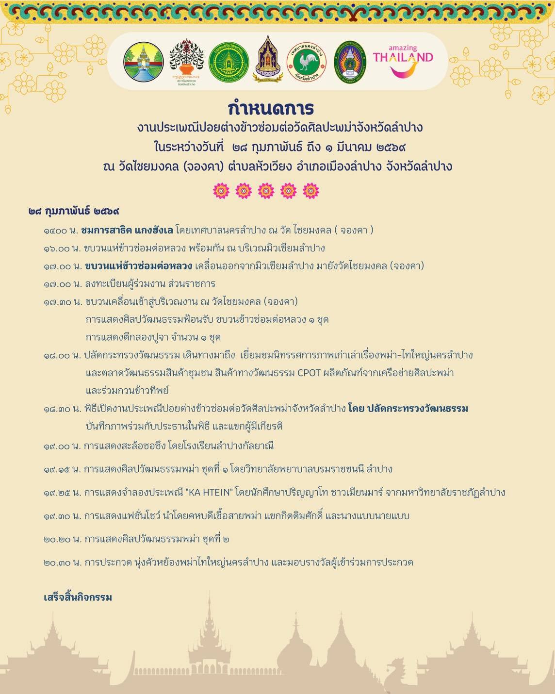 - อ้างอิง https://www.facebook.com/lampang.tourism