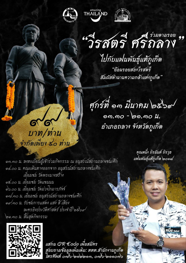 งานตามรอยวีรสตรีศรีถลาง คือโอกาสดีที่เราจะได้หยุดฟังเรื่องเล่าจากอดีต และตระหนักถึงพลังของผู้หญิงไทยที่เคยยืนหยัดปกป้องแผ่นดิน 🌸🇹🇭