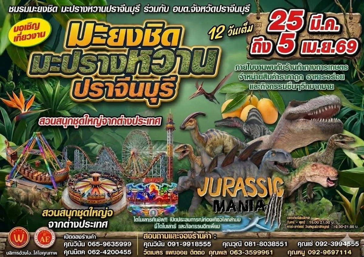 งาน “ชมรมมะยงชิด มะปรางหวานเมืองปราจีนบุรี 2569” จัดขึ้นระหว่างวันที่ 25 มีนาคม – 5 เมษายน 2569 เป็นอีกหนึ่งเทศกาลที่รวมทั้งความอร่อย วิถีเกษตร และความสนุกไว้ในที่เดียว 🌿