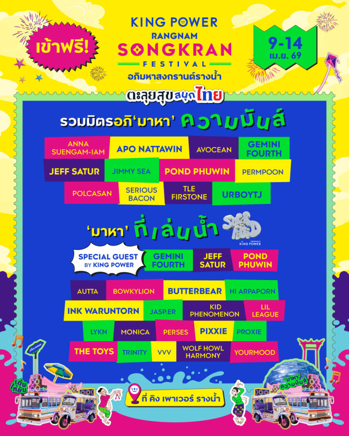 Welcome to “Rangnam Songkran Festival 2026 – THE JOY OF THAI”, happening from April 9–14, 2026 at King Power Rangnam, Bangkok — where Thai culture meets world-class entertainment in one epic festival 💛