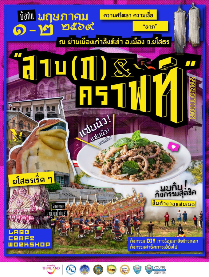 กลางกลิ่นหอมของลาบอีสานที่ลอยอวลอยู่ในอากาศ และเสียงหัวเราะของผู้คนที่เดินเล่นอย่างเป็นกันเอง “ลาบ(ภ) & คราฟท์” คือหนึ่งในเทศกาลเล็กๆ ที่เต็มไปด้วยเสน่ห์แบบยโสธรแท้ๆ 🌿✨