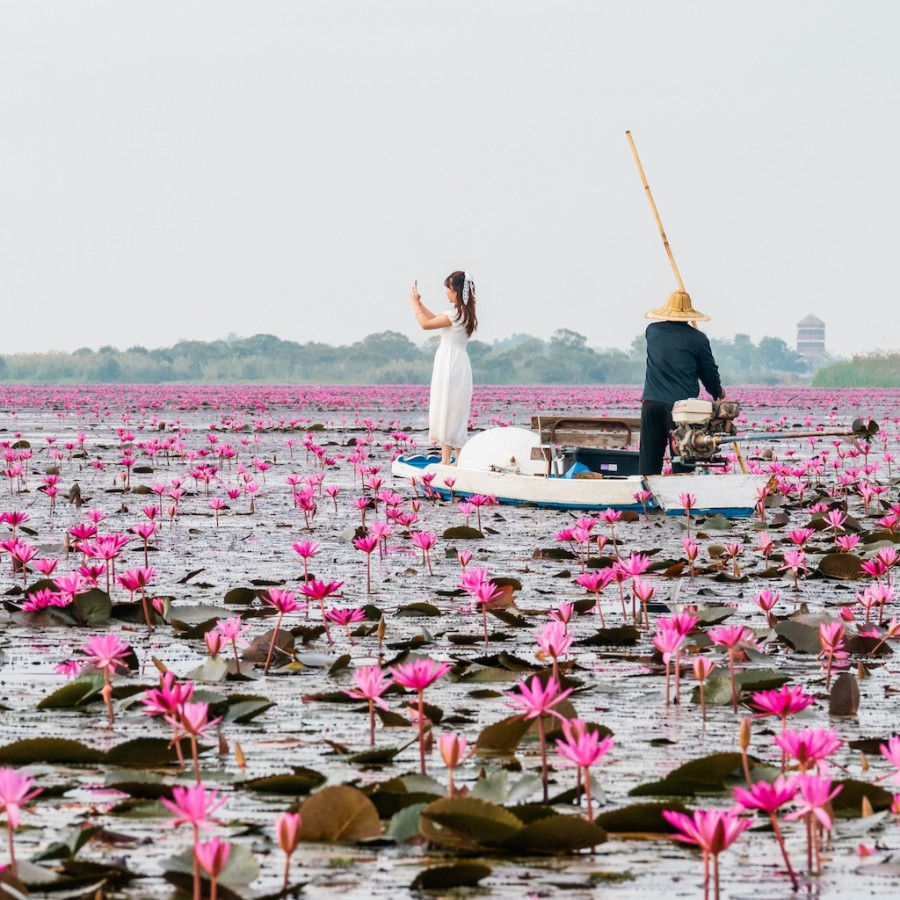 การล่องเรือชมทะเลบัวแดงคือไฮไลต์สำคัญที่สุด 🚣♂️🌸