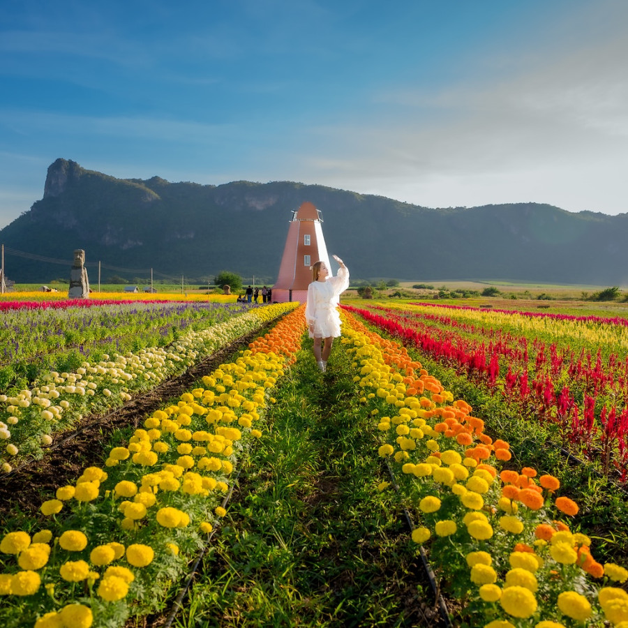 🌼 พื้นที่กว่า 100 ไร่ของสวนแห่งนี้ถูกแต่งแต้มด้วยสีสันจากดอกไม้หลากหลายสายพันธุ์ที่กำลังเบ่งบานเต็มที่ รายเรียงเป็นแนวยาวสุดสายตา ไม่ว่าจะเดินไปตรงไหนก็เห็นเฉดสีที่สดใส ถูกต้องตามชื่อ “ฟลาวเวอร์แลนด์” อย่างแท้จริง
