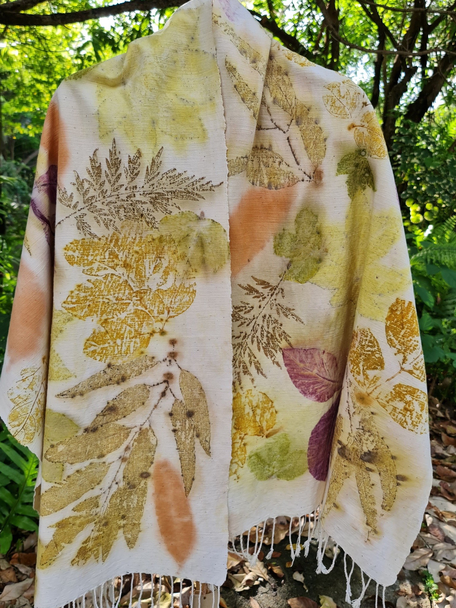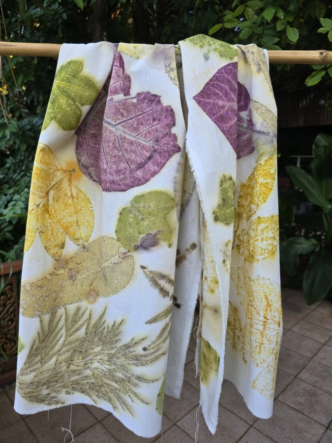Eco-Printing คือกระบวนการพิมพ์ลวดลายลงบนผืนผ้า โดยใช้สีและลายจากวัสดุธรรมชาติ เช่น ใบไม้ ดอกไม้ เปลือกไม้ โดยไม่ใช้สารเคมีใด ๆ เลย ทำให้ได้ผ้าที่ปลอดภัย เป็นมิตรต่อสิ่งแวดล้อม และมีเอกลักษณ์เฉพาะตัว เพราะลวดลายแต่ละผืนเกิดจากธรรมชาติจริง ๆ และไม่สามารถทำซ้ำได้ 🙏