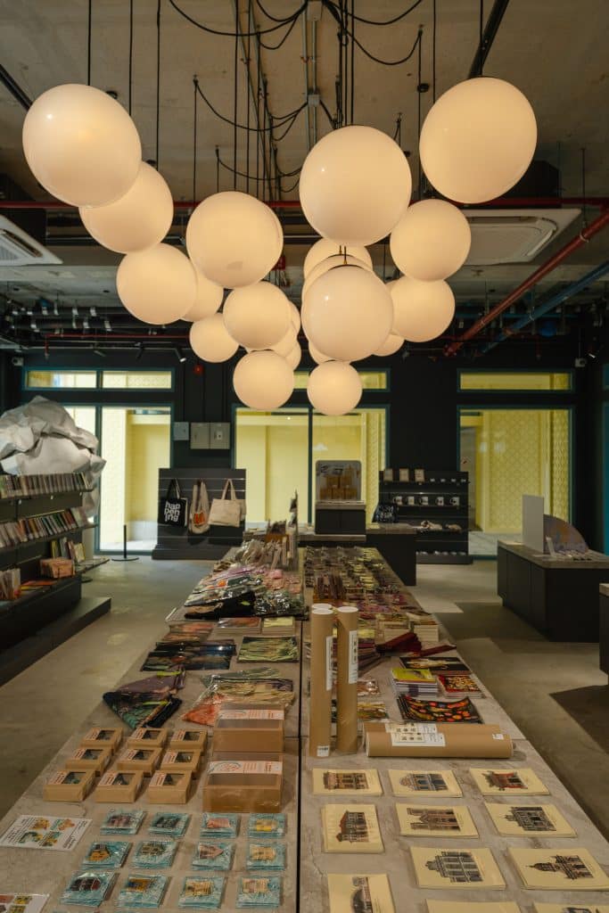 นอกจากพื้นที่จัดแสดงศิลปะ ชั้น 1 ยังมีมุมจำหน่ายของที่ระลึกและงานทำมือฝีมือคนไทย ไม่ว่าจะเป็นโปสการ์ด เทียนหอม หรือของตกแต่งดีไซน์เรียบเท่ เหมาะจะเลือกซื้อติดไม้ติดมือกลับไปเป็นความทรงจำจากการเดินทาง 🎁