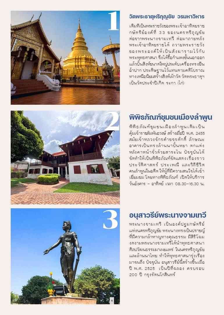 ถ้ามีเมืองหนึ่งที่เวลาเดินช้าลงอย่างอ่อนโยน เมืองนั้นคือ “ลำพูน” 🪷 เมืองเล็ก ๆ ที่เต็มไปด้วยเรื่องเล่าหลายร้อยปี วัดวาอารามเก่าแก่ วิถีชีวิตเรียบง่าย และรอยยิ้มจริงใจของผู้คน การได้มาลำพูนไม่จำเป็นต้องเร่งรีบ แค่ขึ้น “รถรางนำเที่ยวในเขตเทศบาลเมืองลำพูน” แล้วปล่อยใจให้ไหลไปตามเส้นทางประวัติศาสตร์ คุณจะค่อย ๆ สัมผัสเสน่ห์ของเมืองนี้อย่างเป็นธรรมชาติ ราวกับมีไกด์ท้องถิ่นคอยกระซิบเล่าเรื่องข้างหู ✨